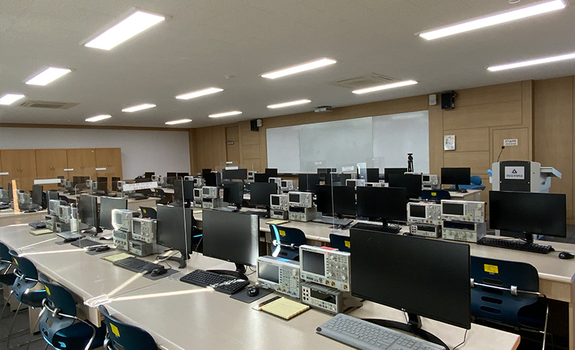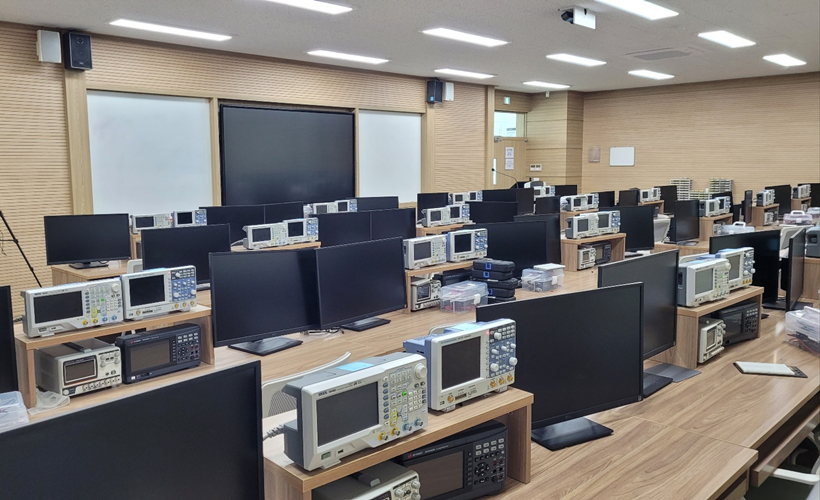 - PC40대 / 모니터40대 / 디지털멀티메터 / 함수발생기 / 오실로스코프 / 직류전압기 / L.C.R-Meter